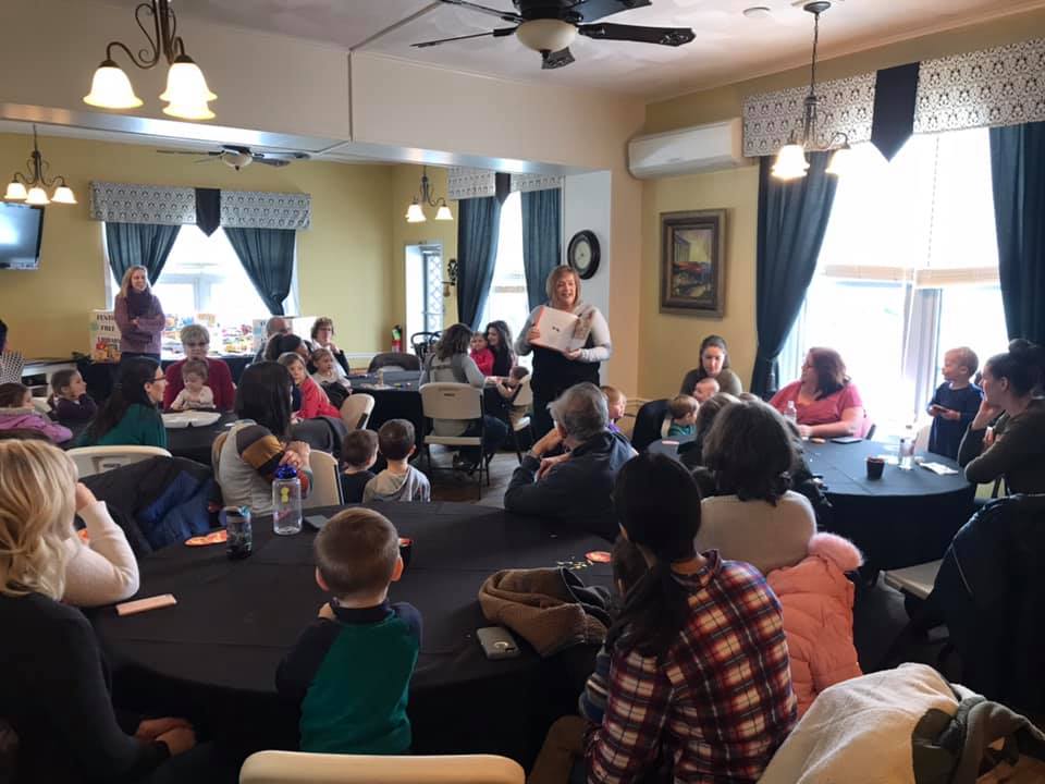 Red & White threw a pizza party ‘Story Time’ at our small banquet room at the end of February to present the hundreds of donations to the library and children. Guiseppe’s donated pizza, salad, cookies & drinks for both children and adults to enjoy.”